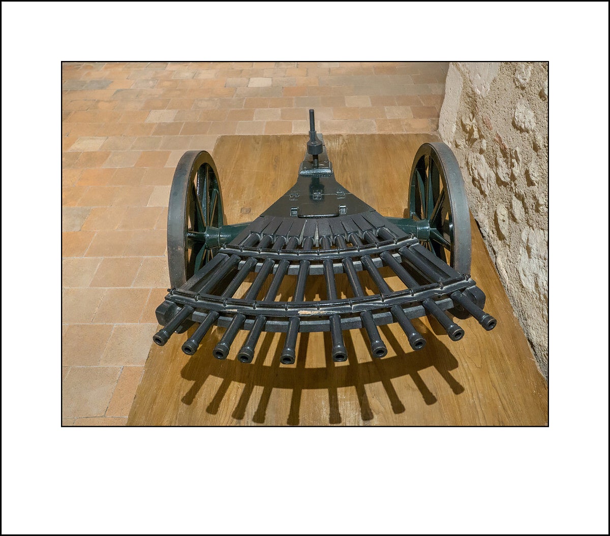 9th image. A full sized reproduction of the first machine gun.