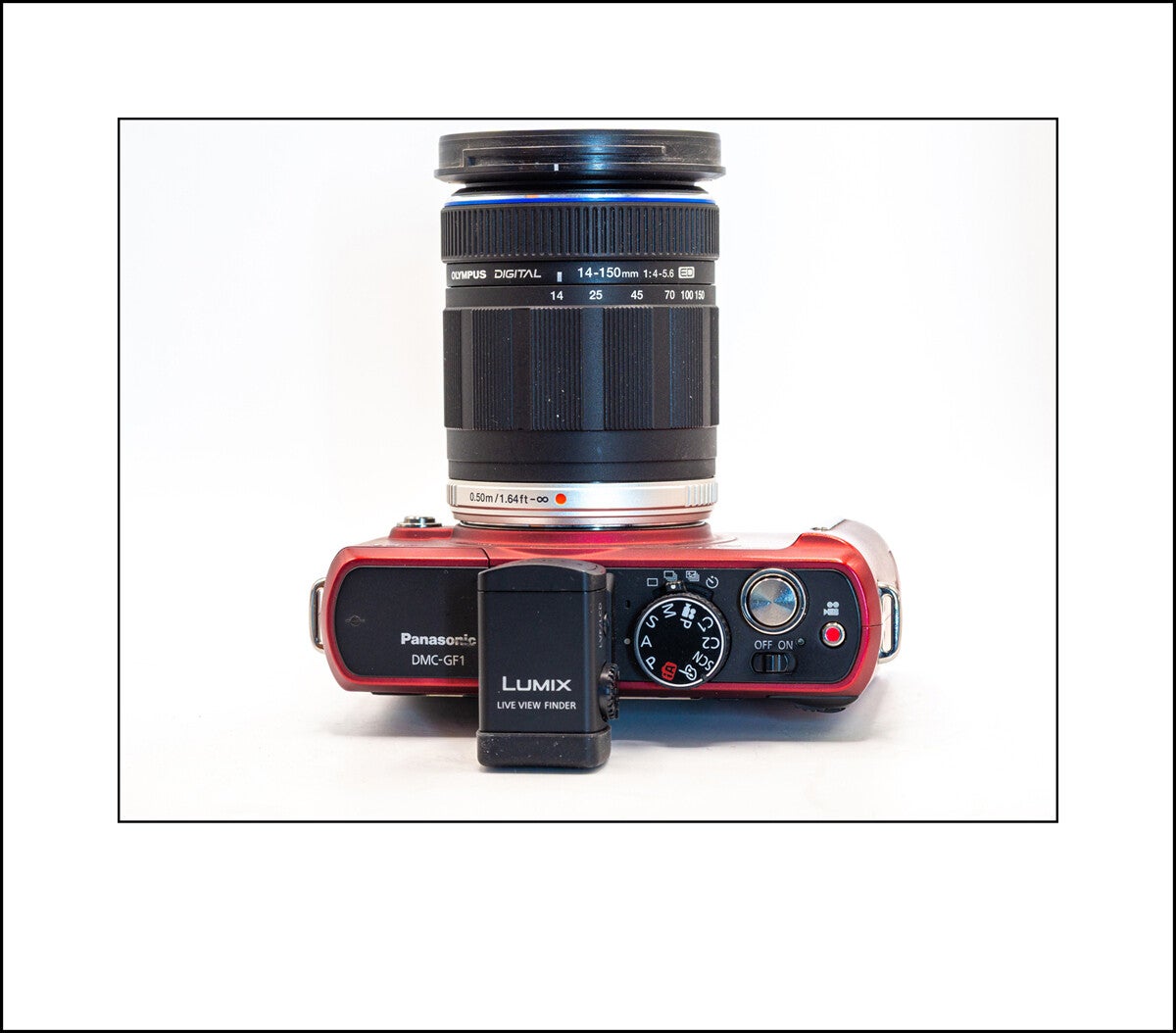Above: The Olympus 14-150 f3.5-5.6 mounted on the Panasonic GF1 with the LVF1.