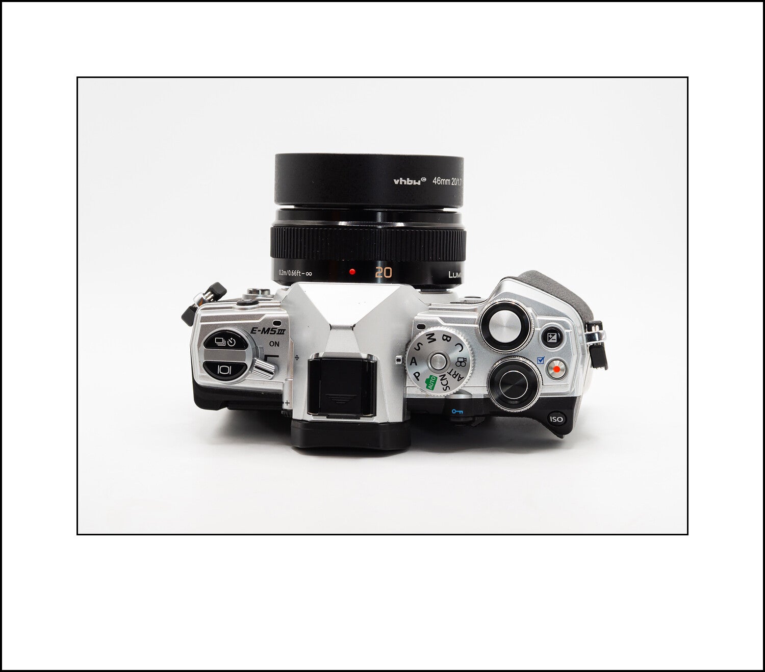 Above: The Panasonic 20 f1.7 mounted on the Olympus E-M5iii